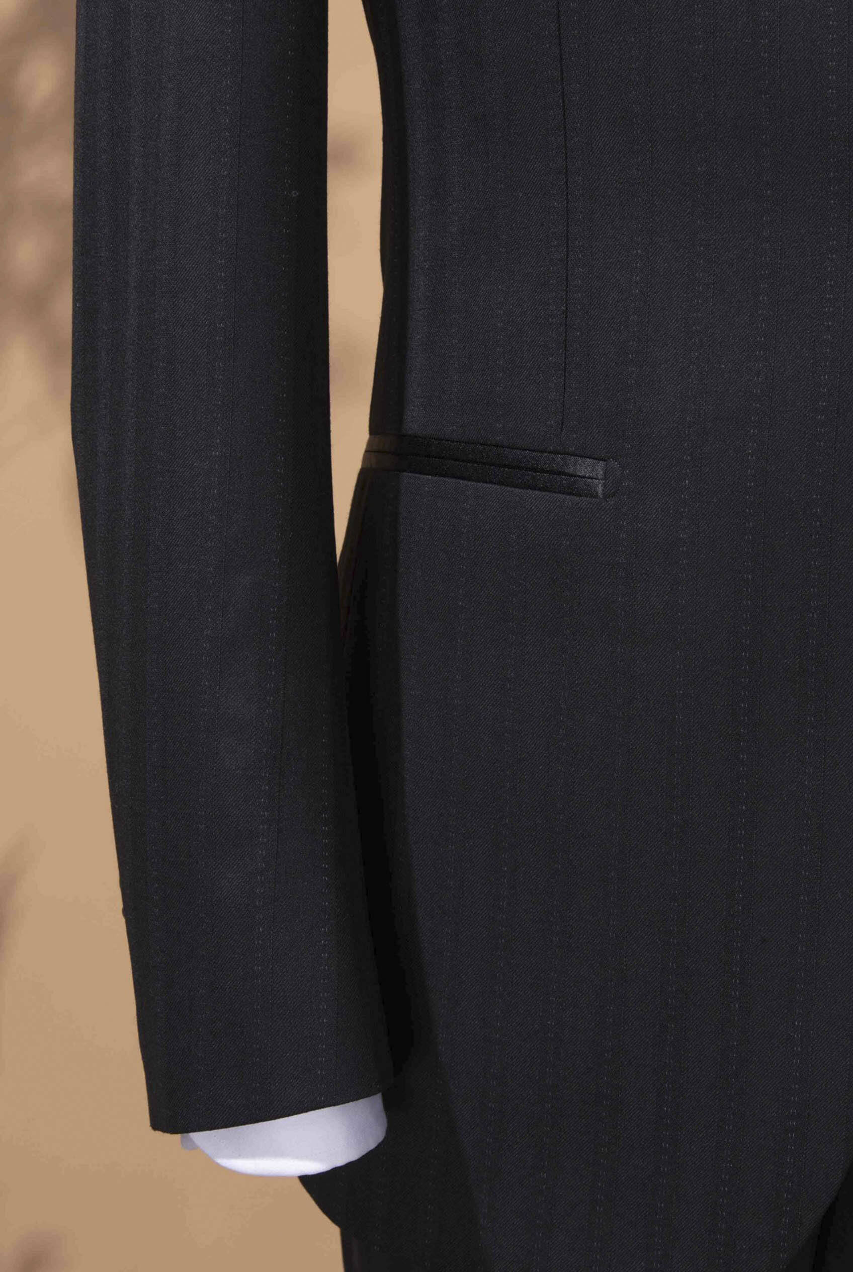 Product Highlight:Timeless elegance for life's most important moments. This Black Tie essential features a razor-sharp silhouette with satin-faced peak lapels that frame the face and broaden the shoulders. Crafted from superfine deep-black wool, it absorbs light to create a slimming profile. Whether for a wedding, a gala, or the opera, this tuxedo respects the rules of formalwear while offering modern comfort.