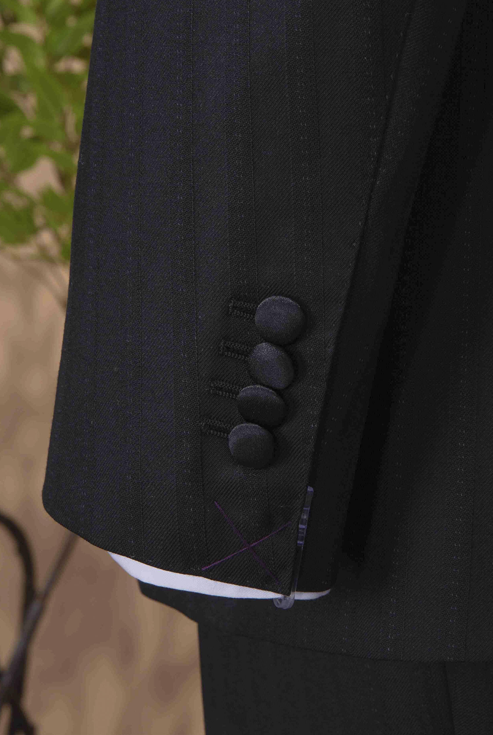 The Lapel: The lapels are faced with high-grade polyester satin (or silk satin for premium orders) that offers a luxurious sheen contrast against the matte wool.